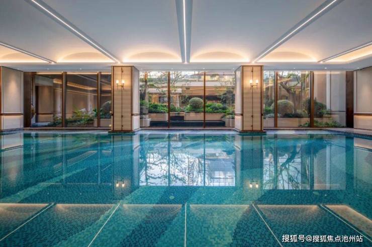 泳池以波浪造型为设计亮点,整面通透的玻璃幕墙将中庭景致无缝引入,形成无界视觉体验,让运动成为一场与自然对话的享受。