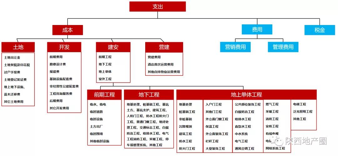 1、目标成本管理—成本组成:包含土地成本、开发成本、建安成本、营建成本;营销费用、管理费用;税金。