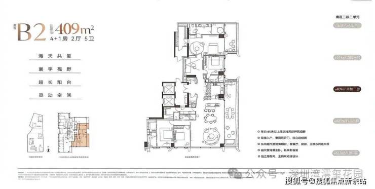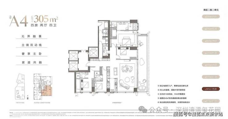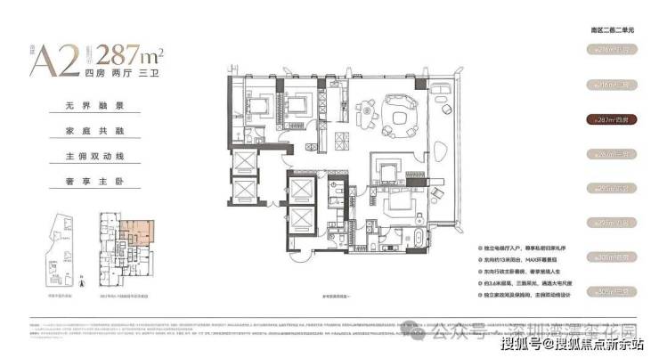 本次加推南区2栋2单元,共162套,主打低区216-287-295-305㎡、高区349-409-430㎡纯大平层。
