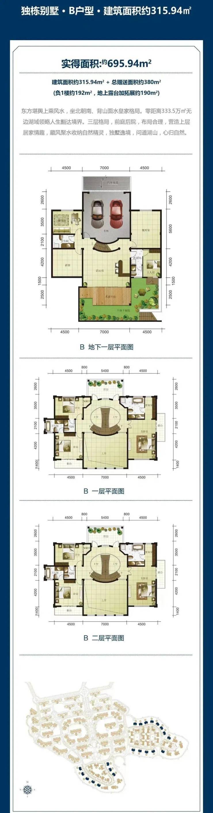占地面积308亩,总建面15万平方米,容积率0.7,绿化率65%,三面环湖(5000亩馨湖水墨景观)采用东南亚建筑风格与生态湖景完美融合,景观园林由美国著名园林专业设计公司匠心打造。沿湖木织栈道、凉亭、百果园依地势高低起伏而建,错落有致,最大程度保留了原生态的自然景观。少量珍藏户型在售,醇熟现房,即买即住。