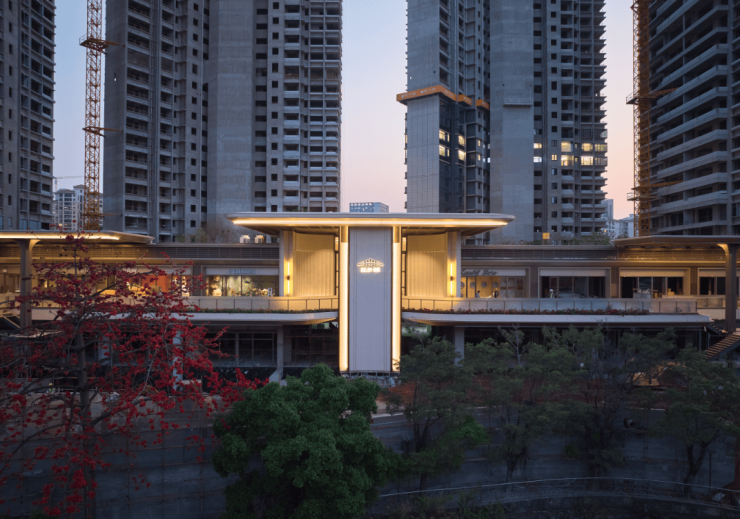 再比如中央园林,借鉴岭南园林风格融入现代空间美学,再搭配整块天然奢石打造的背景墙,在光影交错间尽显质感。