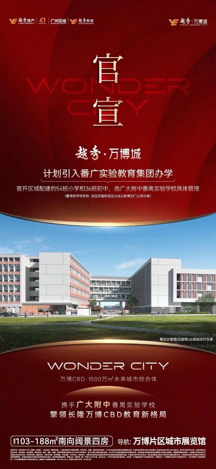 · 首开区配建54班小学+36班初中,由广大附中番禺实验学校具体管理
