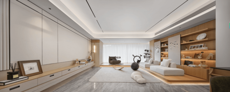 我们看看这张实景图,别看只是建面约105-128平的刚改产品,但其能打造出大平层同款的视觉尺度。