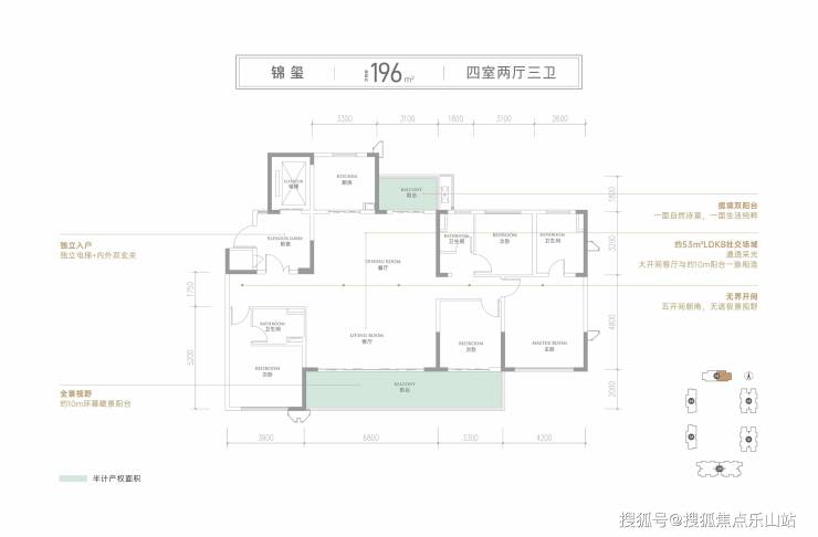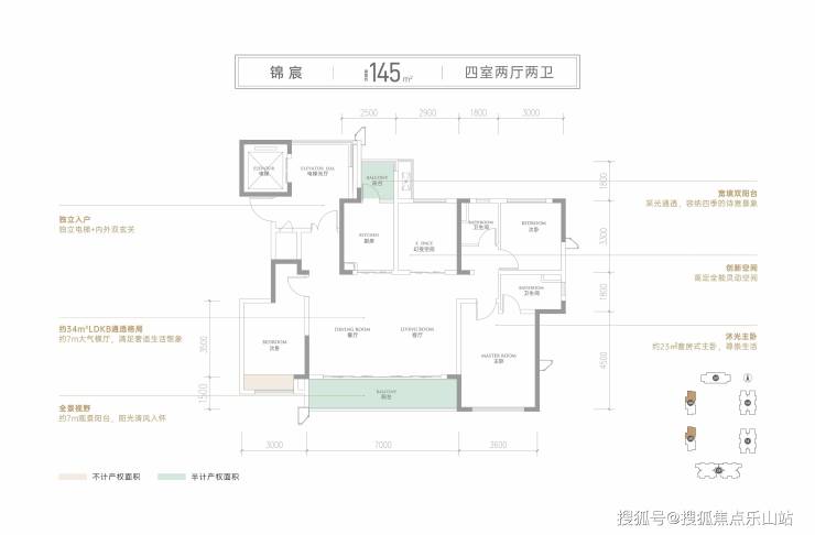 独立电梯+内外双玄关约34㎡LDKB社交场域约7m观景阳台约23㎡套房式主卧高定全能灵动空间宽境双阳台,采光通透