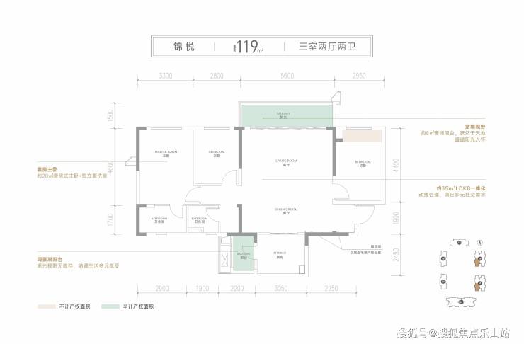 阔景双阳台,视野无遮挡约35㎡LDKB一体化,满足多元社交需求约5.6m观景阳台