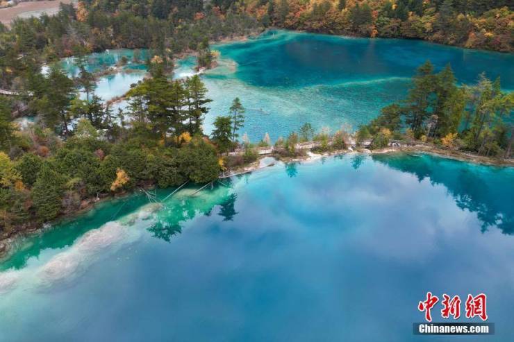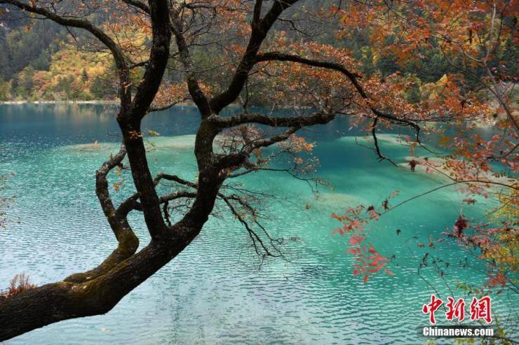 10月23日,深秋时节,四川九寨沟如同油画一般,漫山遍野的红叶绚丽多彩,与清澈见底的湖水交相辉映,美轮美奂,“秋日童话”正上演。 张浪 摄