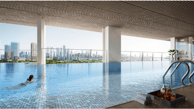 26楼空中会所涵盖有空中花园、空中吧台、景观绿池、泳池等聚会空间等,层峯私属社交场域,会客接友,尽显身份与品位。