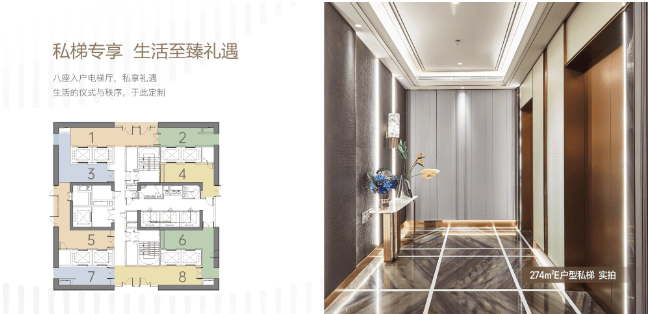 其中,专梯入户通过高端智能控制系统,刷卡抵达专属楼层,业主还可专梯直达瑞吉酒店,享酒店奢华配套。