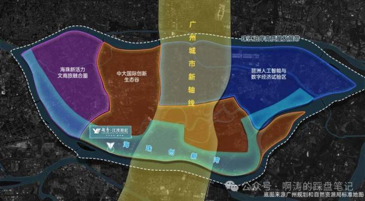 地处广州城市新轴线、珠江后航道和中大国际创新谷三轴交汇处,立足城市未来生态宜居、经济活跃、文化繁荣的滨水区域。