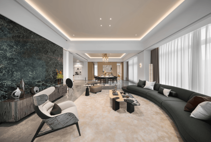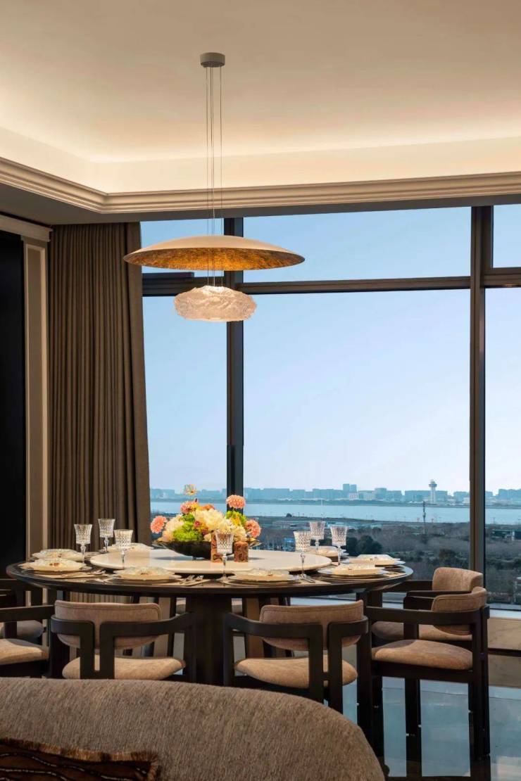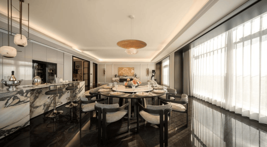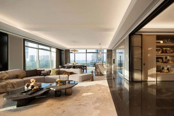 梁志天&上海世尊共同执笔:410㎡湾潮户型:WSD上海世尊团队执笔,以独一无二的“摩登东方”设计语言,抽象提取东方写意精神,与复古摩登、自由艺术平衡相融,领潮钱湾黄金时代。