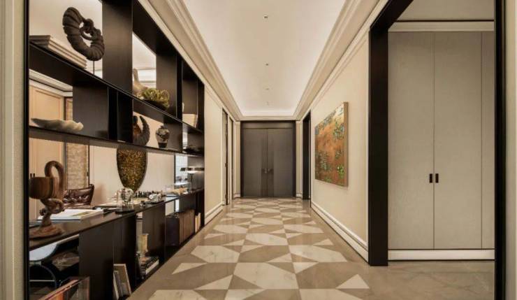 想想看,普通的房子为了省面积,都在绞尽脑汁“消灭走廊”。只有400㎡以上的大平层,才能奢侈地拥有这样一条“私人艺廊”,安放艺术和时光。