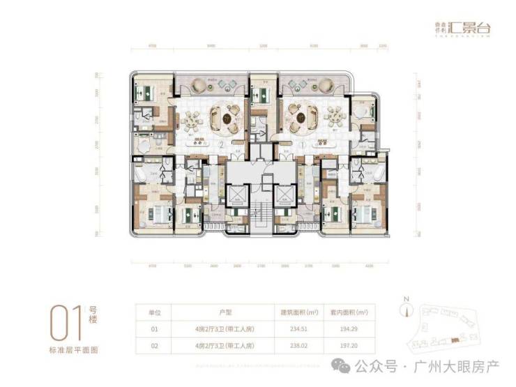 项目由14栋12层小高层组成,产品涵盖123-352㎡三至五房,共8类户型,户型实用率约82-84%