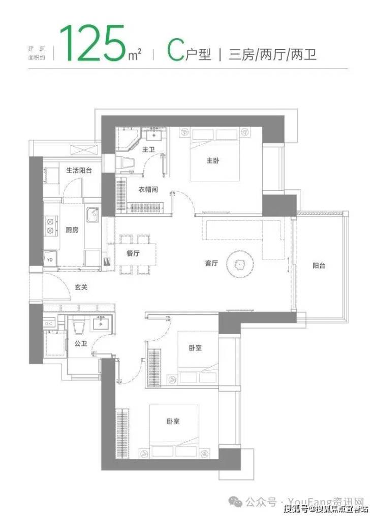 建筑面积约125㎡C户型