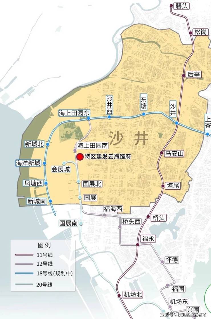 项目位于在宝安沙井街道,享受会展新城和海洋新城双区利好叠加,距离已开通地铁12号线海上田园南站A口约150米和毗邻20号线会展城站,是双地铁口物业。