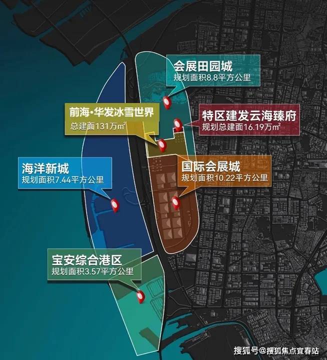 前海合作区扩大到约120.56平方公里,会展新城及海洋新城片区凭借双核规划优势,总投资超千亿元将直接撬动连通前海万亿规模经济带,将成为粤港澳大湾区新的经济增长极。