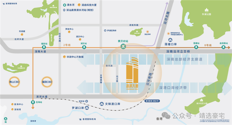 ①深南大道、滨河大道双主干道交汇,文锦路、春风隧道(建设中)便利通勤