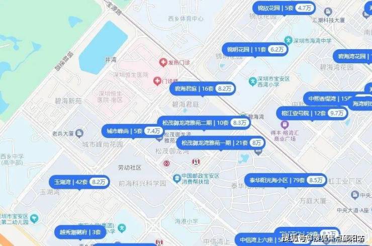 交通方面:距离11号线碧海湾站直线距离约500米,步行10分钟可达,30分钟就能直达福田CBD。而且距地铁1号线西乡站直线距离约1000米。