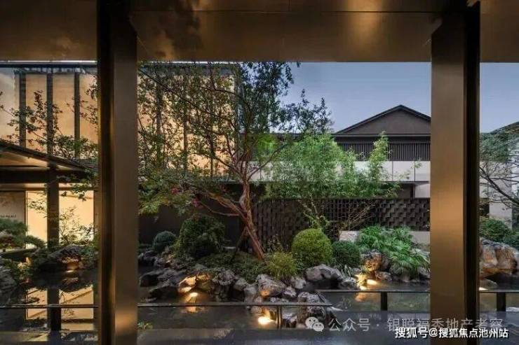 其次在对植物“活古董”的严选上。项目不惜成本,100%全冠移植园林所有苗木,丛生香樟、银杏、百年石榴等,更寻遍苗圃,引入象征“紫气东来”的百年丛生紫薇等珍稀大乔木。这些树木本身已是成景的“植物活古董”,它们的落位,让园林在建成之初便拥有了历经数十年才能积淀的苍翠与气场。