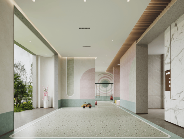 项目以1.5超低容积率、40%高绿化率构建低密社区,采用新中式建筑风格,白墙黛瓦与玻璃幕墙相映,既保留江南建筑的雅致韵味,又兼具现代居住的通透感。社区景观以“春江十景”为脉络,打造亲水平台、曲桥连廊、四季花田等景观节点,更规划有共享菜园、邻里茶室、全龄活动区,让自然与生活交融,邻里温情在此生长。紧邻城市滨江生态带,千米江岸线成为社区“天然后花园”,晨观江雾、夜听潮声,自然之美触手可及。