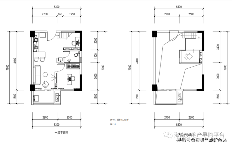 Loft 35平2房、47.92平1+1房(小面积平层),69平-115平1-4房