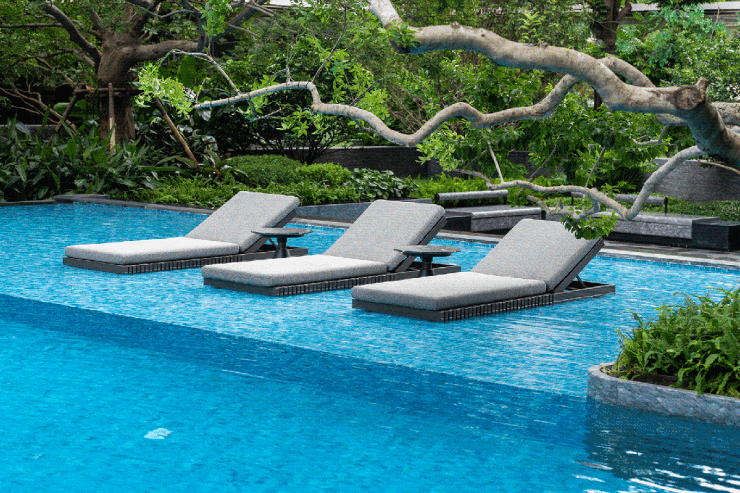 规划约550 ㎡成人泳池、约 40 ㎡的儿童池及按摩池,并打造星级酒店会所吧台。
