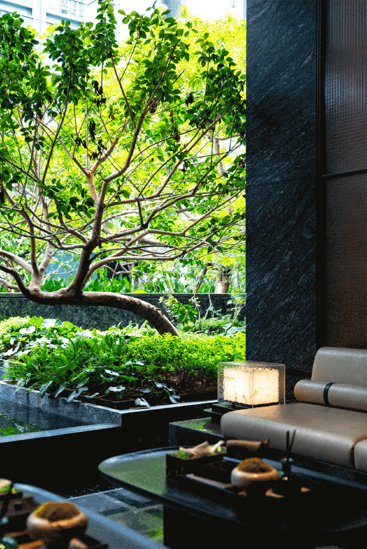 无论是行政酒廊还是悬浮茶舍,都能透过大面积玻璃,去欣赏来自园林美景。