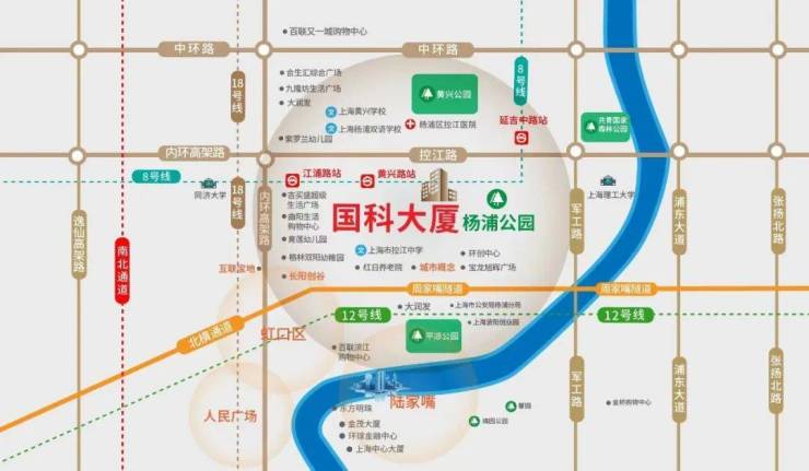 轨交:8号线黄兴路站400米,距离地铁12号线隆昌路站1.6公里。