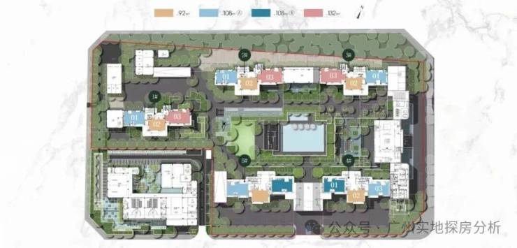 项目楼栋分布和户型:项目是片区首个打造T3纯板楼的项目,还根据广州季风特点将楼梯偏转20°,保证户户南北通透、全年通风采光,无形中提升居住体验,为生活增添更多舒适和惬意。