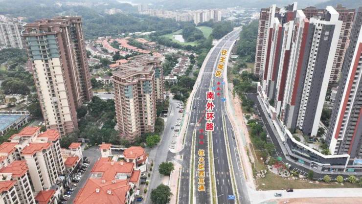 观岭,处于南外环出入口处,南外环通车后,从观岭出发,可直接由匝道进入南外环,约10分钟内可抵达东区;