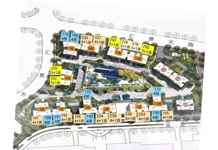 项目规划包括14栋12层的小高层,共有408户。户型面积段在123-352平方米之间,主要是三至五居室。