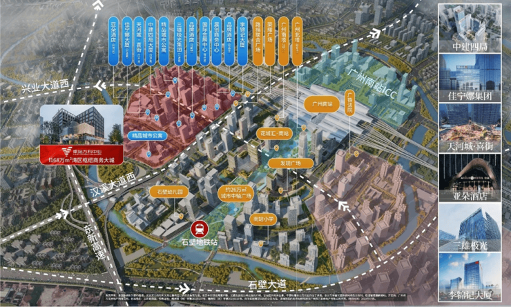 目前,中建四局总部、李锦记华南总部、三雄极光总部、健力宝华南区总部、佳宁娜集团、华南中璟、广州中车等企业已签约进驻。