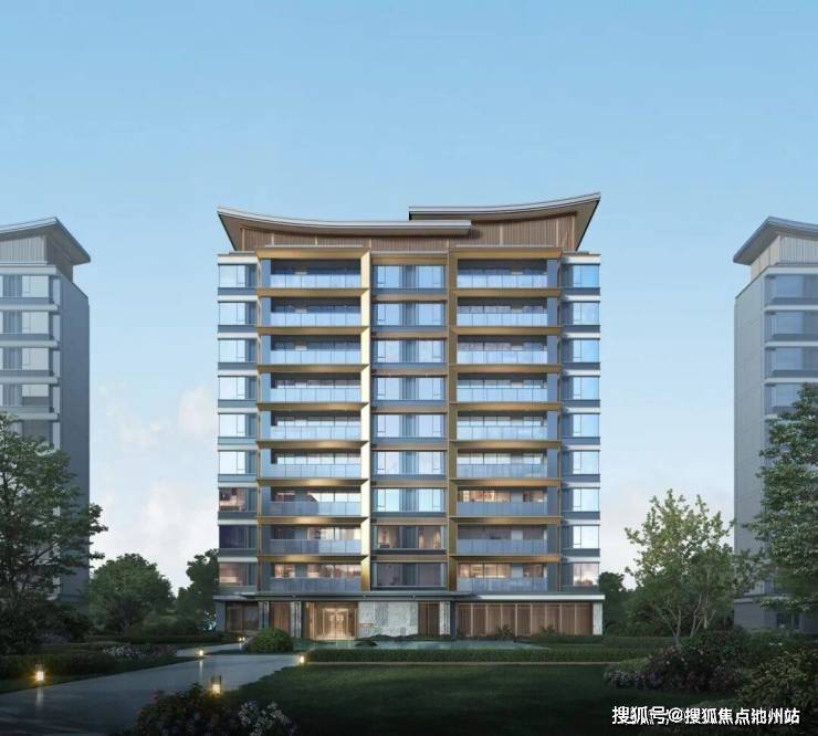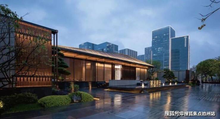 项目建筑设计首层石材干挂+四面铝板+三波两腔玻璃+超高窗墙比配上,高级感和艺术美同时在线。顶端的中式飞檐,东方建筑美学融入现代审美。