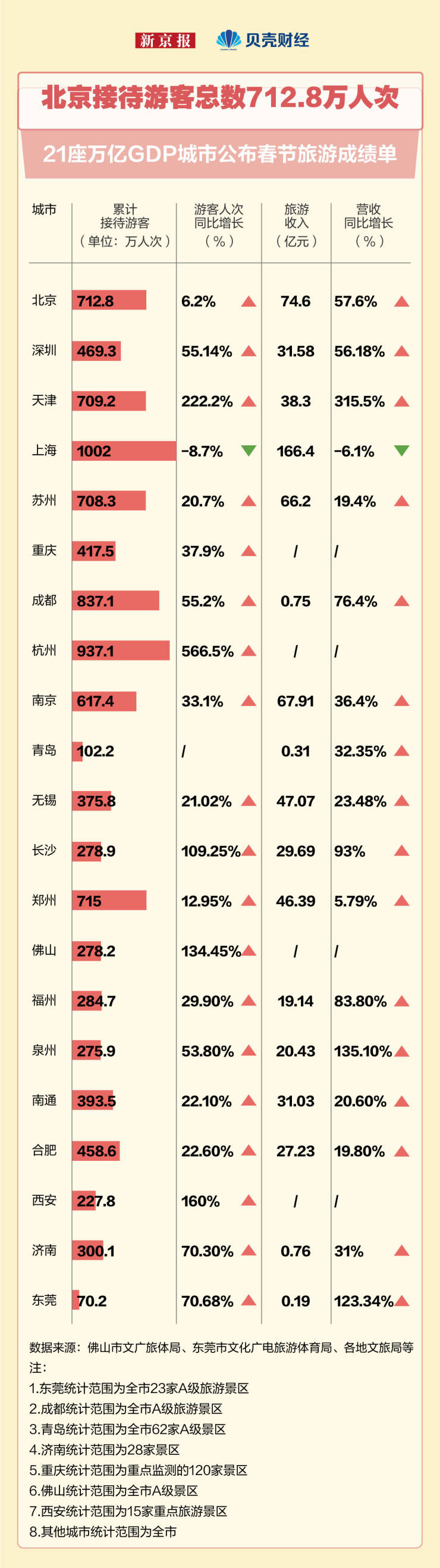 北京接待游客超七百万人次 21座万亿GDP城市披露新春文旅消费
