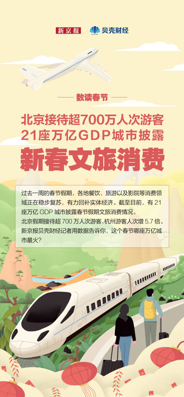 北京假期接待超700万人次游客,杭州游客人次增5.7倍。新京报贝壳财经记者用数据告诉你,这个春节哪座万亿城市最火?