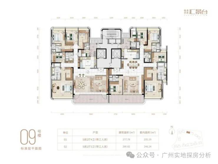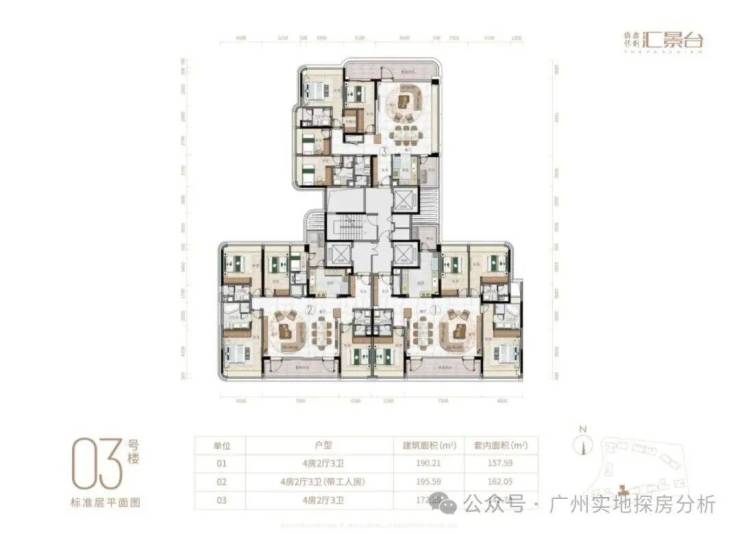项目由14栋12层小高层组成,涵盖123-352㎡三至五房,共8类户型。