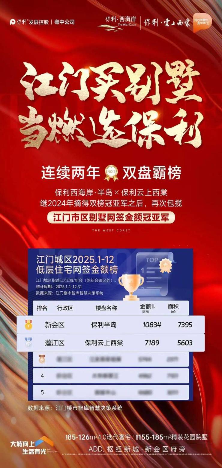 江门市区别墅网签金额冠亚军