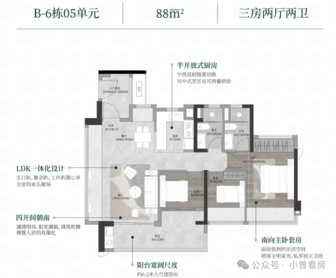 88㎡三房是首置首选,总价378万起,实际使用面积堪比传统105㎡的房子
