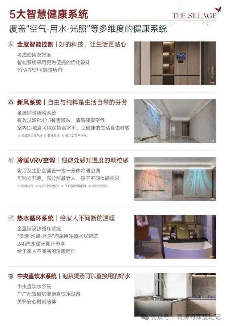 全屋智联系统、新风系统、中央直饮水系统、中央空调、热水循环系统,以更成熟的前沿科技,打造更健康更舒适的室内微环境。