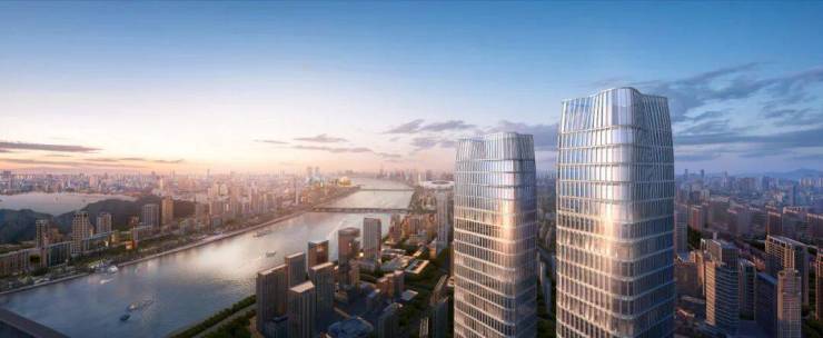 望江山由全球排名第七、拥有145年历史的伍兹贝格担纲整体设计。设计灵感源于钱塘江波纹与西湖群山曲线,塔楼圆角柔化建筑棱角,双曲塔冠提炼群山韵律,让建筑向天空温柔过渡。