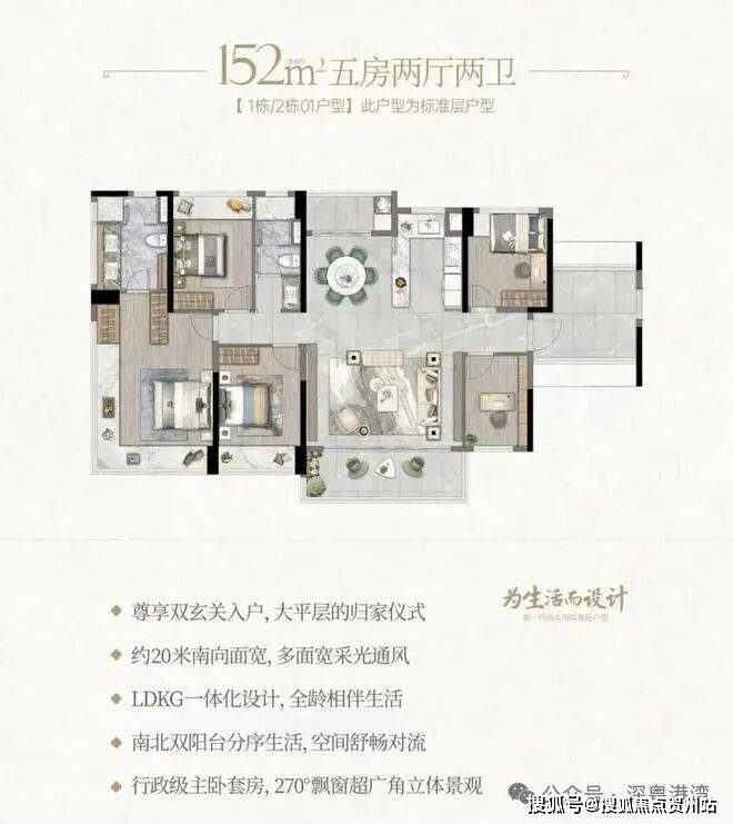 且配备双玄关入户、双阳台、 270°观景飘窗等配置。