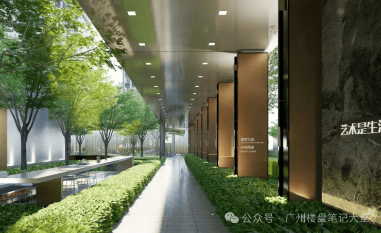 社区绿地率高约47%,六大森林主题园林连通花地河绿道公园和茶滘榕诚公园,风、光、水、景融汇其中,营造CBD内稀缺的低密意境。