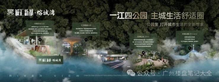 诚汇新都·榕诚湾,大城南向一线临江的水岸住区,坐拥一江四公园,实现一半住宅一半公园。