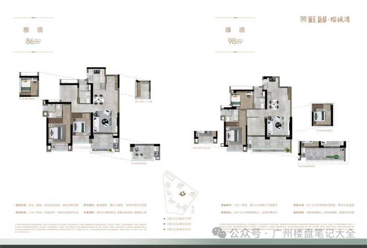 【全新央景楼尊2栋 约86-115㎡瞰江望园三/四房】#实得超100%·约13㎡高尔夫阳台·超宽楼距·三重景观