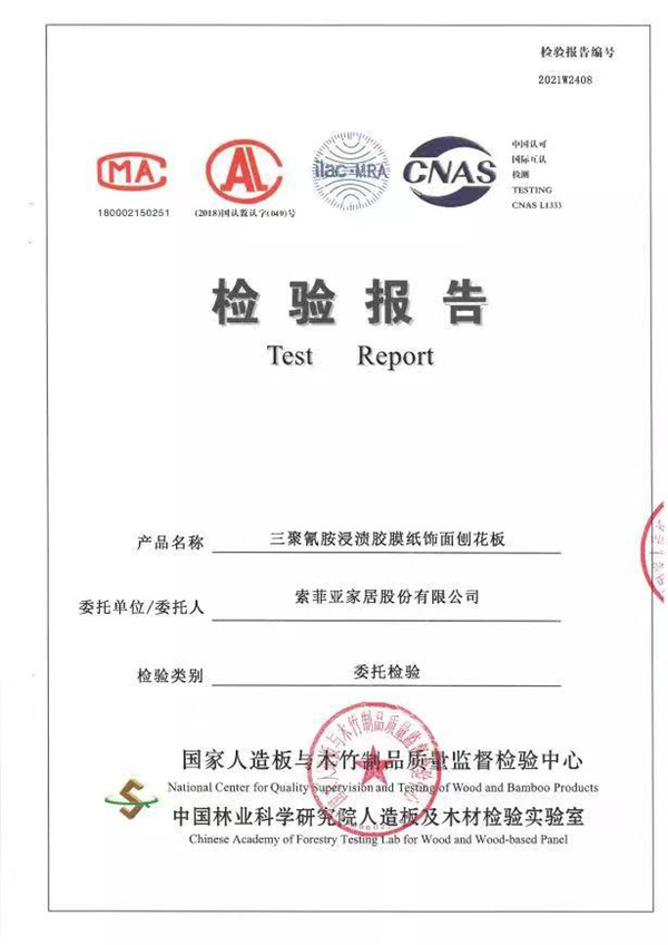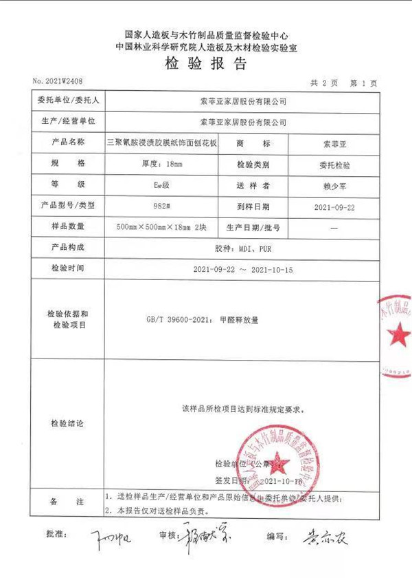 因此,为了维护消费者自身的合法权益和家人的身体健康,索菲亚全屋定制仍坚持每月将板材送到国家权威检测机构检测,进行油漆产品重金属检测、板材理化性能检测、五金抗盐雾腐蚀试验等各类原辅材了理化性能检测,并月月公示检测结果,从官网公布的10月板材甲醛释放量检测结果索菲亚康纯板、索菲亚基材无醛添加-ENF级多层实木板均达到标准,只为确保板材在环保程度、产品性能的严格把控,让消费者进一步安心和放心。