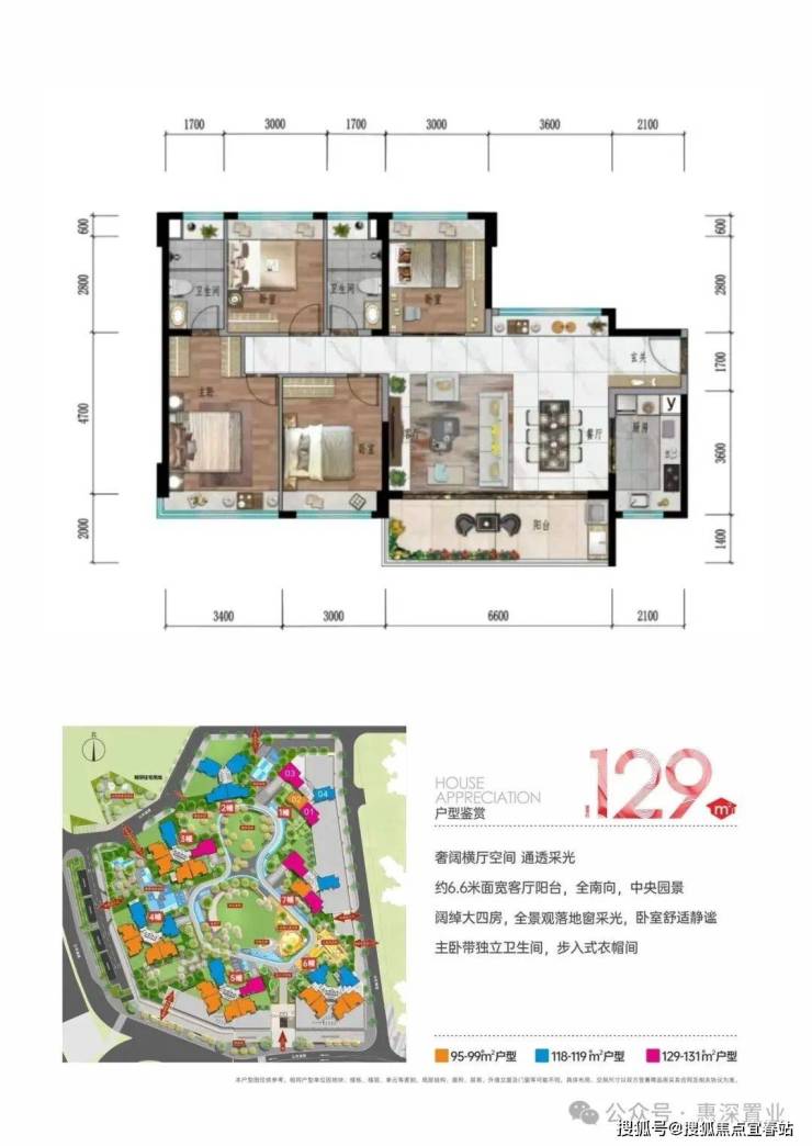 『稀缺园景 横厅阔绰四房』:129㎡户型 四房两厅两卫