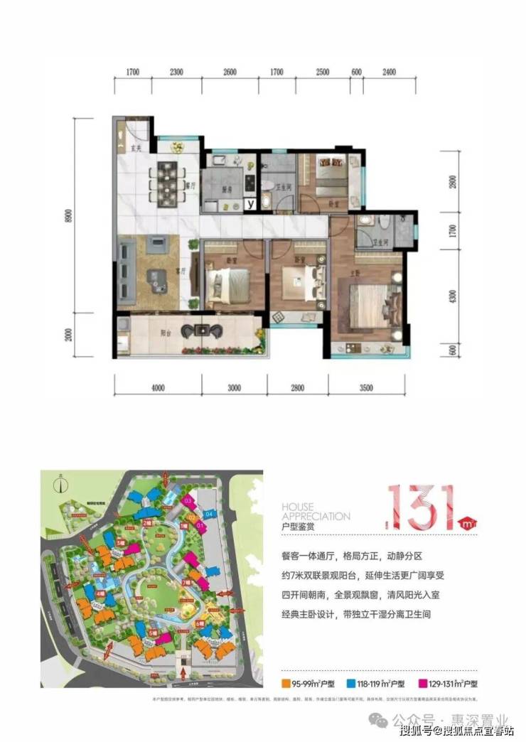 『稀缺园景 竖厅大阳台四房』:131㎡户型 四房两厅两卫