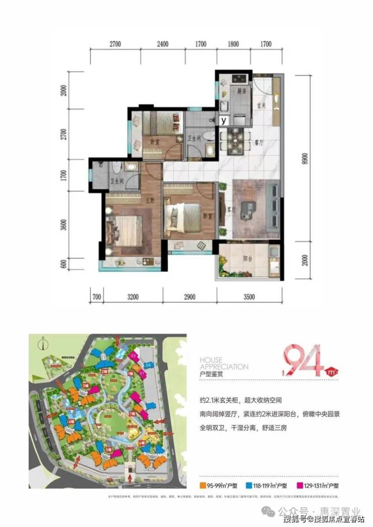 『稀缺园景 舒适三房』:94㎡户型 三房两厅两卫