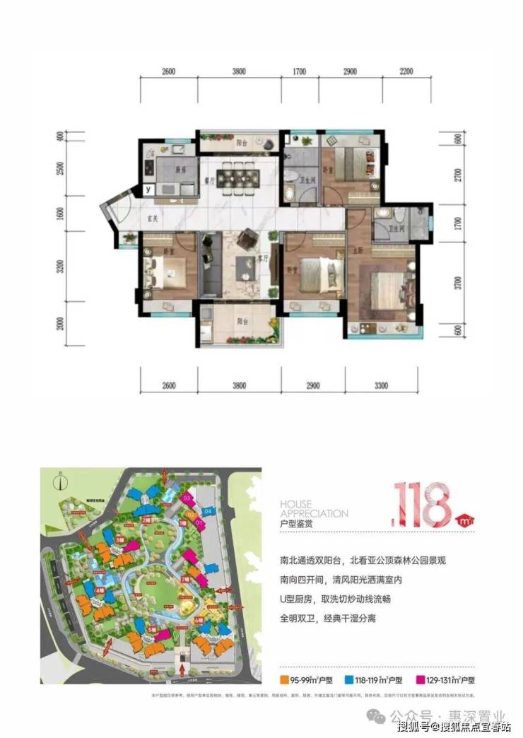 『稀缺园景 南北通双阳台四房』:118㎡户型 四房两厅两卫