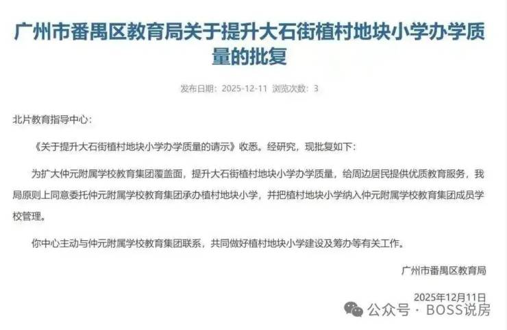 所以开发商瞄准了明年开学的植村地块小学,出钱出力把仲元引进过来,整个大石片区教育质量提升、鸿璟台有名校光环更好卖了、周边楼盘也蹭到了名校。