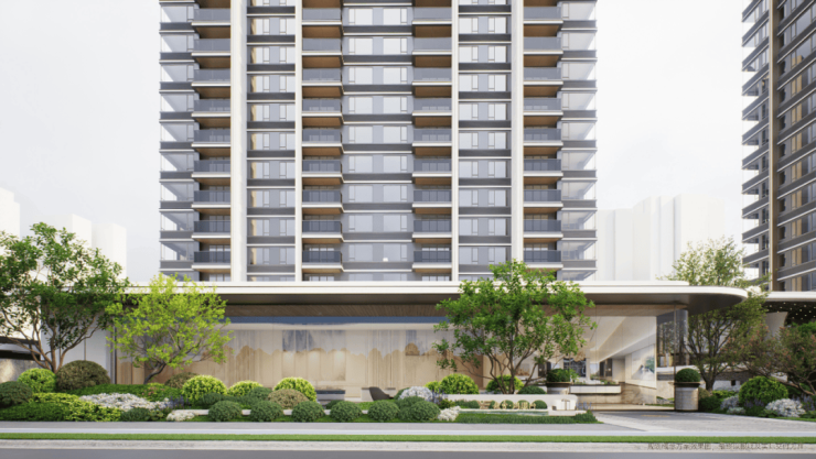 立体园林:社区容积率为 2.6,规划 11 栋住宅,其中 8 栋是 18 层的低密板楼,3 栋是 32 层的塔楼,楼间距宽敞。园林采用立体布局,种植香樟、凤凰木、三角梅等绿植,设置了休闲步道、景观小品、儿童游乐区等,满足不同年龄段业主的休闲需求。